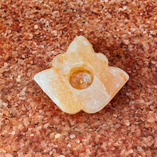 Leaf-Shaped Himalayan Salt Candle Holder: Hand-Carved Natural Decor