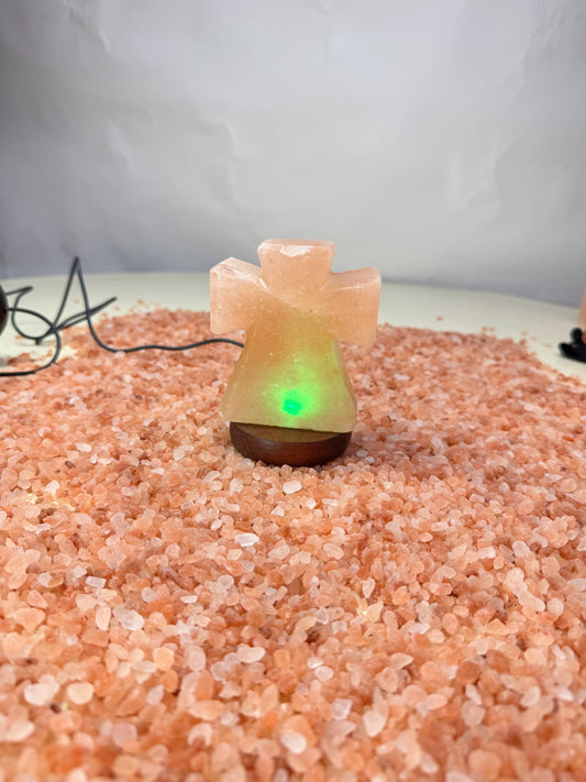 Mini Cross Himalayan Pink Salt USB Lamp: Hand Carved Spiritual Decor