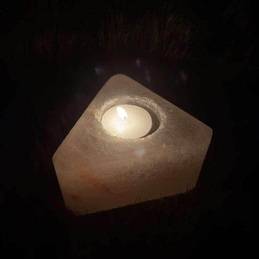 Triangle-Shaped Himalayan Salt Candle Holder: Hand-Carved Natural Decor